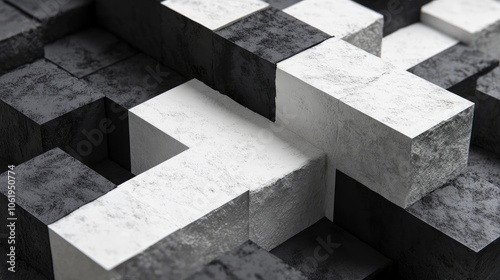 Monochrome black and white cubes forming a textured backdrop with an empty section for showcasing products or branding.