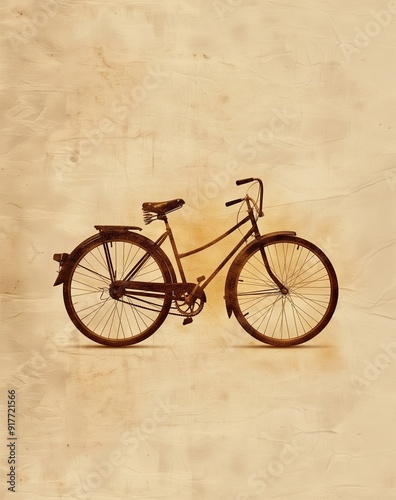 Vintage Bicycle Illustration with Antique Texture Background for Retro and Nostalgic Themes