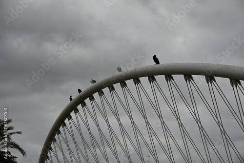 przęsło most nowoczesny biały ptaki gołębie niebo stal metal